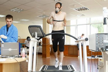 Элвера Рахимича в коллективе уважают, а потому уступают место на беговой дорожке. На лицо боснийцу надевают маску: он становится похожим на Дарта Вейдера. Бежать в ней тяжело - сбивается дыхание, и немного натирает. Кто смотрел знаменитую эпопею Джорджа Лукаса, помнит, что Вейдеру еще в бытность Энакином Скайуокером отрубили руку. Но если у киношного злодея все произошло быстро и без лишних мучений, то Рахимича врачи решают потерзать: каждые несколько минут у несчастного футболиста берут кровь из пальцев. "Папа, давай!" - подбадривает его молодежь. "Все выкачали, до последней капли!" - говорит нам с фотографом ветеран, вкладывая последние силы в рукопожатие. Пот градом льется с его лица.
