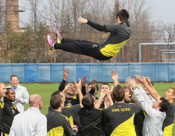 Перед началом почти часового занятия Шустиков успел одернуть пустившегося против него в обводку Мамаева: аккуратней, только после травмы же. А затем Слуцкий собрал команду в круг и предложил поздравить с днем рождения Тошича. Вчерашний именинник Щенников свою порцию командных подарков получил накануне. Серба же еще ждало качание на руках. Сразу после легкой пробежки после растяжки партнеры схватили его под руки-ноги и четырежды запустили в воздух под общее Happy Birthday! При этом исправно ловили, пусть кто-то в шутку предлагал разбежаться по сторонам и лес рук едва не выронил серба.