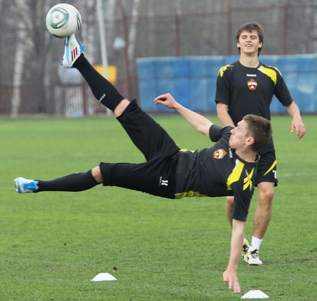 Армейские футболисты (Акинфеев, Чепчугов, А. Березуцкий, В. Березуцкий, Щенников, Набабкин, Одиа, Игнашевич, Шемберас, Алдонин, Рахимич, Мамаев, Хонда, Цауня, Тошич, Секу, Гонсалес, Дзагоев, Нецид) высыпали на поле в полдень. Заблаговременно к месту занятия выдвинулся тренерский штаб. Сергей Шустиков побаловал немногочисленных зрителей из числа представителей прессы ударом с минусового (и даже очень) угла в створ. И сорвал аплодисменты. Тренер был явно доволен. Не скрывали своего хорошего настроения и игроки. По числу репортеров предположили, что впереди очень важный матч, может быть, даже Лиги чемпионов, а хорошо знакомых им журналистов еще и подкалывали: мол, за нас или за "Спартак" болеть будете.