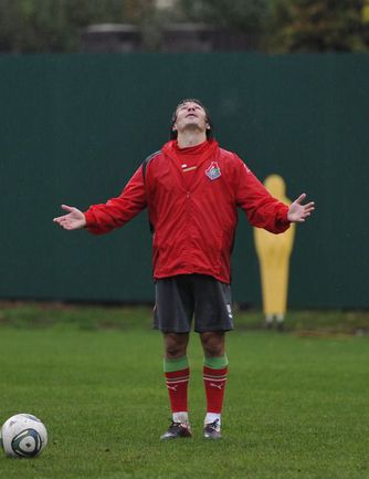 Пока же после несколько затянувшегося теоретического занятия красно-зеленые попали под ливень. В тренировке приняли участие почти все имеющиеся в распоряжении Жозе Коусейру кадры. Работали в общей группе и имевшие проблемы со здоровьем Да Кошта и Дюрица. Из основной обоймы не хватало только Фильцова, Тарасова и Торбинского. Последний был встречен бригадой "СЭ" в холле жилого корпуса в халате - после работы в тренажерном зале. Грустный полузащитник показал на мобильном телефоне кадр из матча с "Волгой" в середине августа, в котором ему едва не сломали ногу. С тех пор игровая нагрузка хавбека ограничилась получасом поединка сборной с Македонией в начале сентября. После же этого матча - новое обследование, опять лечение.
