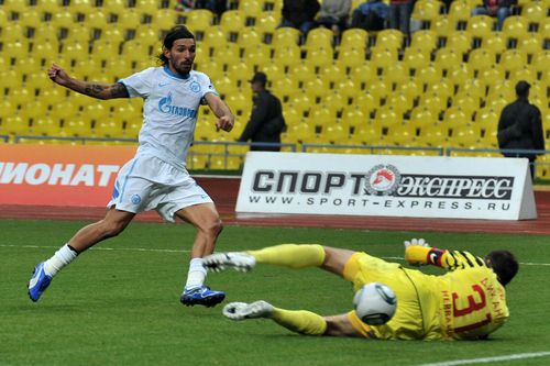 Вырваться вперед зенитовцы могли еще до перерыва, когда Широков едва не поразил ворота при подаче от углового. Но сделали это гости уже во второй половине. В перерыве Карпин выпустил Брызгалова вместо Дзюбы для усиления обороны. Но с ходу она с чужим наступлением не разобралась. Данни принял перевод с левого фланга в центр, отпасовал правее на Широкова. Макеева мяча коснулся, но его не перехватил. Полузащитник же закрутил к площади ворот. Кержаков на дальнем углу проткнул мяч мимо Диканя. И передал привет не только своему фан-сектору или недоброжелателям, но и конкуренту в споре бомбардиров армейцу Думбья.