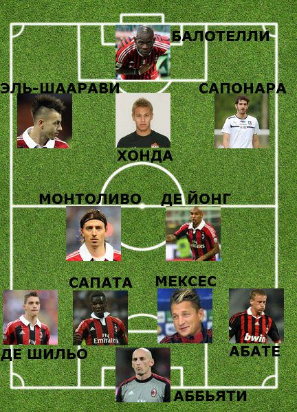 Итальянские журналисты, не дожидаясь официального подтверждения трансфера, уже нарисовали схему будущей тактики "Милана", где японцу отводится место под главной ударной силой команды - Марио Балотелли. Слева рядом с Хондой будет играть другая миланская надежда Стефан Эль-Шаарави, а справа - восходящая звезда из молодежной сборной Италии Риккардо Сапонара.