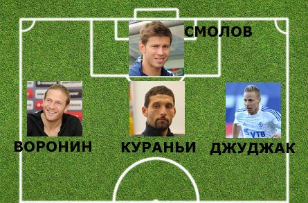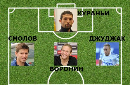Приведенная выше расстановка кажется наиболее близкой к действительности. Кураньи в роли наконечника копья сомнений не вызывает. Тем более, немецкий форвард вряд ли забыл, как взаимодействовать с любящим и умеющим атаковать вторым темпом Ворониным. Для украинца роль второго форварда с функциями разыгрывающего, пожалуй, оптимальна применительно к динамовскому этапу карьеры. Именно на этой позиции Воронин имеет возможность в полной мере реализовать свои таланты, к коим стоит отнести как умение завершить атаку, так и ассистировать партнерам. Умея придержать мяч, вернувшийся из аренды форвард может и выводить на ударные позиции Кураньи, и бросать в прорывы фланговых игроков, и подключать к атакам динамовских опорников. Благо и Сапета, и Нобоа, и Юсупов обладают поставленным ударом. То же касается и Флореску, если с ним, конечно, подпишут контракт. Что касается крыльев атаки, то Джуджак, в ПСВ и "Анжи" игравший слева, вполне освоился на правой бровке. Да и Смолову роль флангового игрока хорошо знакома. Во время аренды в махачкалинском клубе Гус Хиддинк, как правило, выпускал Федора на один из флангов. Это случалось и при использовании схожей с динамовской расстановки 4-2-3-1, и в случае применения схемы 4-3-3.