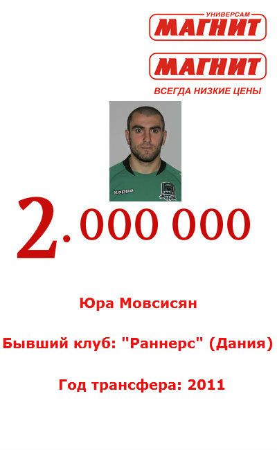 Успешный сезон в Дании (17 голов в 35 матчах) – и на американского армянина логично возник серьезный спрос. Претендовали на форварда в числе прочих киевское "Динамо" и "Рубин", но Мовсисян решил "не делать резких движений", перейдя в молодой "Краснодар". И не прогадал, став в команде лидером и главной звездой. А уж какую выгоду получили сами "быки" благодаря фактурному нападающему: и завоевали сердца новых фанатов, что для нового клуба – первоочередная задача, и "наварились" на 6 миллионов евро, продав Мовсисяна в "Спартак".
