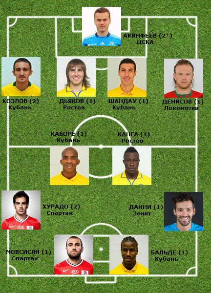 Игорь АКИНФЕЕВ (2) ЦСКА – 7,0. По разу выручил команду в каждом из таймов против "Рубина" в Казани: в первой половине парировал удар Кузьмина, а во второй – лишил верного гола Кулика.