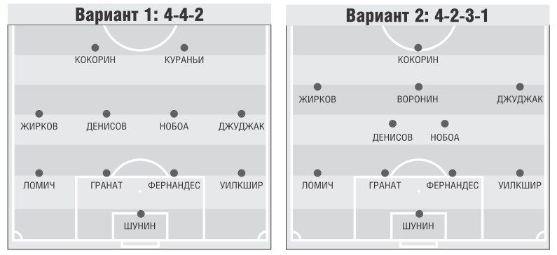 Петреску в этом сезоне использовал два тактических построения – 4-4-2 (которое иногда, когда Воронин отходил назад, трансформировалось в 4-4-1-1) и 4-2-3-1. Последнее применялось во встречах против "Анжи" и "Спартака" – то есть сильных соперников, которые к тому же играют 4-3-3. Будем исходить из того, что румын не станет ничего кардинально менять.