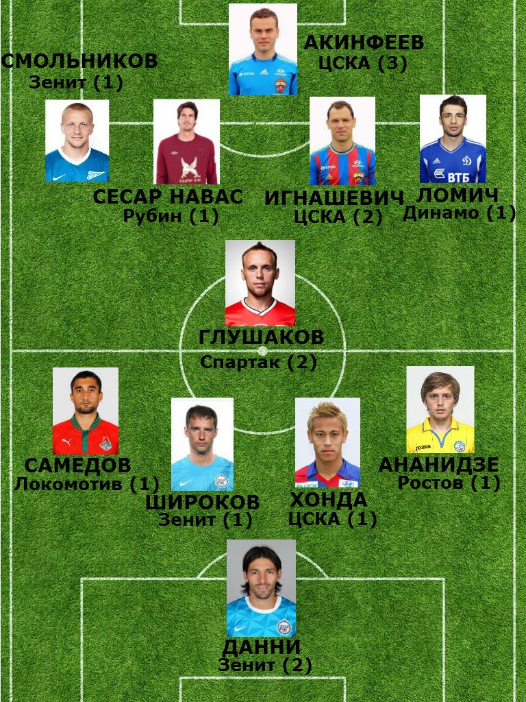 ДАННИ (2) Зенит – 7,0. В который уже раз продемонстрировал неуемное желание играть, подкрепленное недюжинным мастерством и хорошей физической готовностью, позволявшей перемещаться по всему фронту атаки. Против "Анжи" на "Петровском" принял участие в двух голевых комбинациях "Зенита". В сборной "СЭ" занял позицию центрфорварда, поскольку на левом фланге в туре не менее блестяще отыграл ростовчанин Ананидзе.