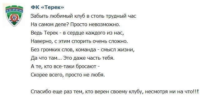 А креативная группа клубного ТВ подготовила весьма позитивное превью к поединку: "Только добрый анонс перед "Тереком". Наши герои: Дмитрий Полянин и его дочь Дарья. И давайте вместе с маленькой Дашей верить в победу своей команды!":