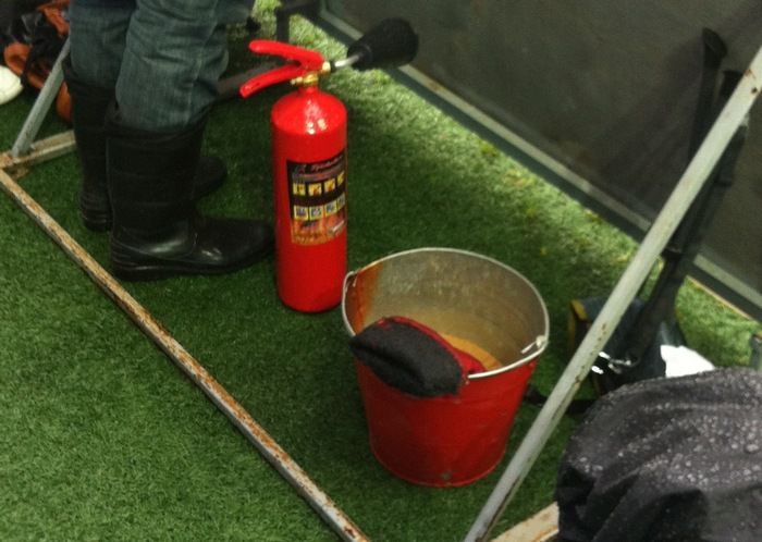 Об умении болельщиков проносить запрещенные вещи в потаенных местах слагают легенды. В перерыве на зенитовской трибуне откуда-то извлекли черный мусорный бачок и метнули в сторону ворот. Благодаря стеклу и сетке ни один вратарь не пострадал.