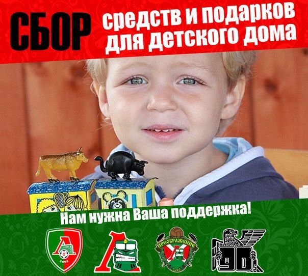 В 8-м туре красно-зеленые собирали средства в помощь детскому дому. На матче с "Кубанью" удалось собрать порядка 7000 рублей. Теперь на очереди – вещи для маленьких сирот: "Что нужно детям? Во-первых, детская подростковая одежда и обувь в хорошем состоянии. Во-вторых, игрушки, развивающие игры, письменные принадлежности, средства гигиены (мыло, зубная паста, шампуни). В-третьих, спортивный инвентарь и принадлежности (мячи, обручи, ролики, велосипеды и т.д)". Похожие акции устроили еще несколько команд премьер-лиги.