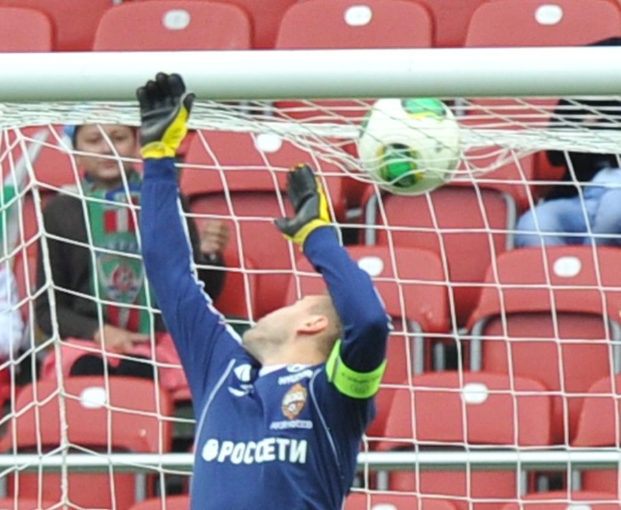 Основной голкипер ЦСКА и сборной России Игорь Акинфеев вынужден был дважды капитулировать после точных ударов игроков атаки чеченской команды. Никто в пропущенных мячах вратаря не винит. Удары по его воротам были из тех, которые называют неберущимися. Да нанесены были из убойных позиций. Но разочарование легко читалось на лице армейца в моменте со вторым взятием ворот московской команды. В эпизоде на фото – удар пришелся выше ворот Акинфеева.