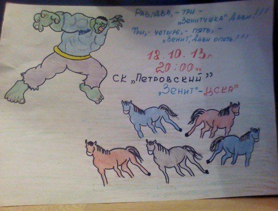 Пока болельщики из города на Неве выбирают, какой мультипликационный персонаж им больше по душе, самые юные поклонники сине-бело-голубых, на которых сотрудничество по большому счету и рассчитано, рисуют свое превью к поединку против ЦСКА: