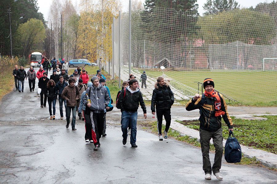 "В субботу 12 октября "Урал" пригласил своих болельщиков совершить на экскурсию по спортивной базе клуба. Посмотреть, в каких условиях живет и тренируется команда, собралось более 70 человек. Многие приехали на базу целыми семьями (!). Болельщики осмотрели номера, в которых живут футболисты, зал для теоретических занятий, столовую, тренажерный зал, банный комплекс и... два футбольных поля – с естественным и искусственным покрытием. На искусственном поле по окончанию экскурсии все желающие могли сыграть в футбол. Среди болельщиков был разыгран "Кубок Бажовии". Желающих было много: набралось 6 команд. В финале сотрудники "Урала" уверенно переиграли команду "Армейцев СвердловСКА" со счетом 4-0. А в матче за третье место верх взяли почти что хозяева турнира – команда "Восход" из Сысерти".