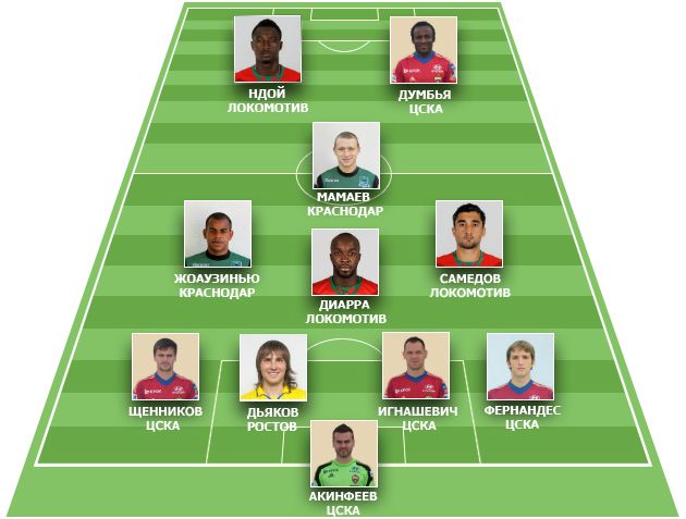 ЦСКА | 18 | 11 | 3 | 4 | 30-17 | 36 | |