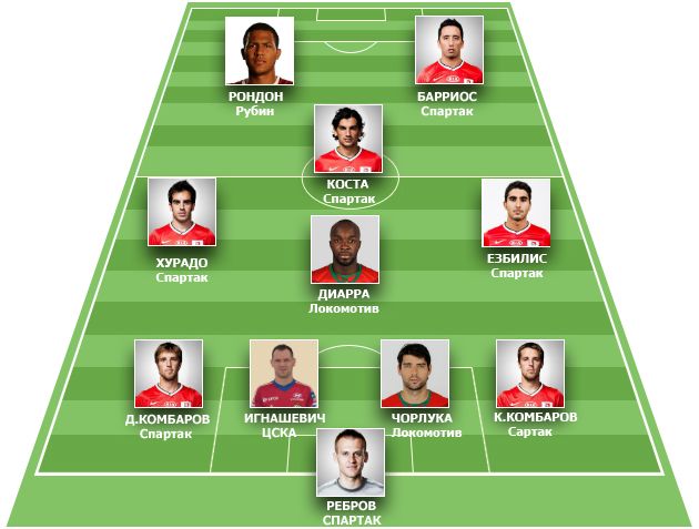 ЦСКА | 18 | 11 | 3 | 4 | 30-17 | 36 | |