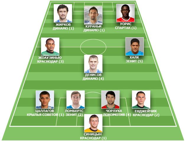 ЖОАУЗИНЬЮ (3) Краснодар – 6,5. Автор голевой передачи был самым активным игроком матча, часто смещаясь в центр со своего левого фланга. Поставил перед обороной ЦСКА несколько задач высшей категории сложности. Решение армейцы находили далеко не всегда.