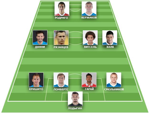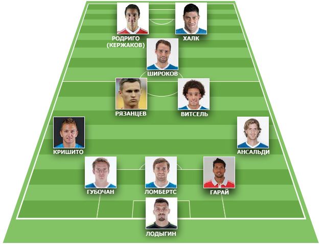 Рулевой "Бенфики" Жорже Жезуш чаще всего использует самую популярную схему 90-х: 4-4-2 с двумя линиями – в обороне и полузащите. С приходом Гарая и Родриго нечто подобное может попробовать и Лучано Спаллетти. Тому же испанцу играть в дуэте с другим нападающим будет куда привычнее, чем действовать на острие в гордом одиночестве. В этом случае Кержаков и Родриго могут появиться на поле вместе, а Халку с Данни придется опуститься на края полузащиты. Витсель с Рязанцевым или Тимощук с Зыряновым при этом сыграют в опорной зоне. Учитывая атакующие наклонности бразильско-португальских флангов, схема получится с явным креном в нападение, поэтому применять ее следует крайне осторожно.