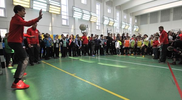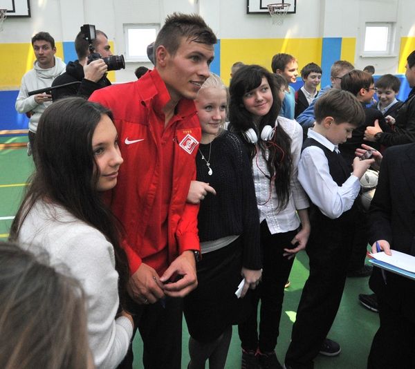 Вчера игроки московского "Спартака" Сергей Паршивлюк, Евгений Макеев, братья Комбаровы, Сергей Песьяков и Артем Ребров вместе с ветеранами клуба дали мастер-класс в одной из московских школ