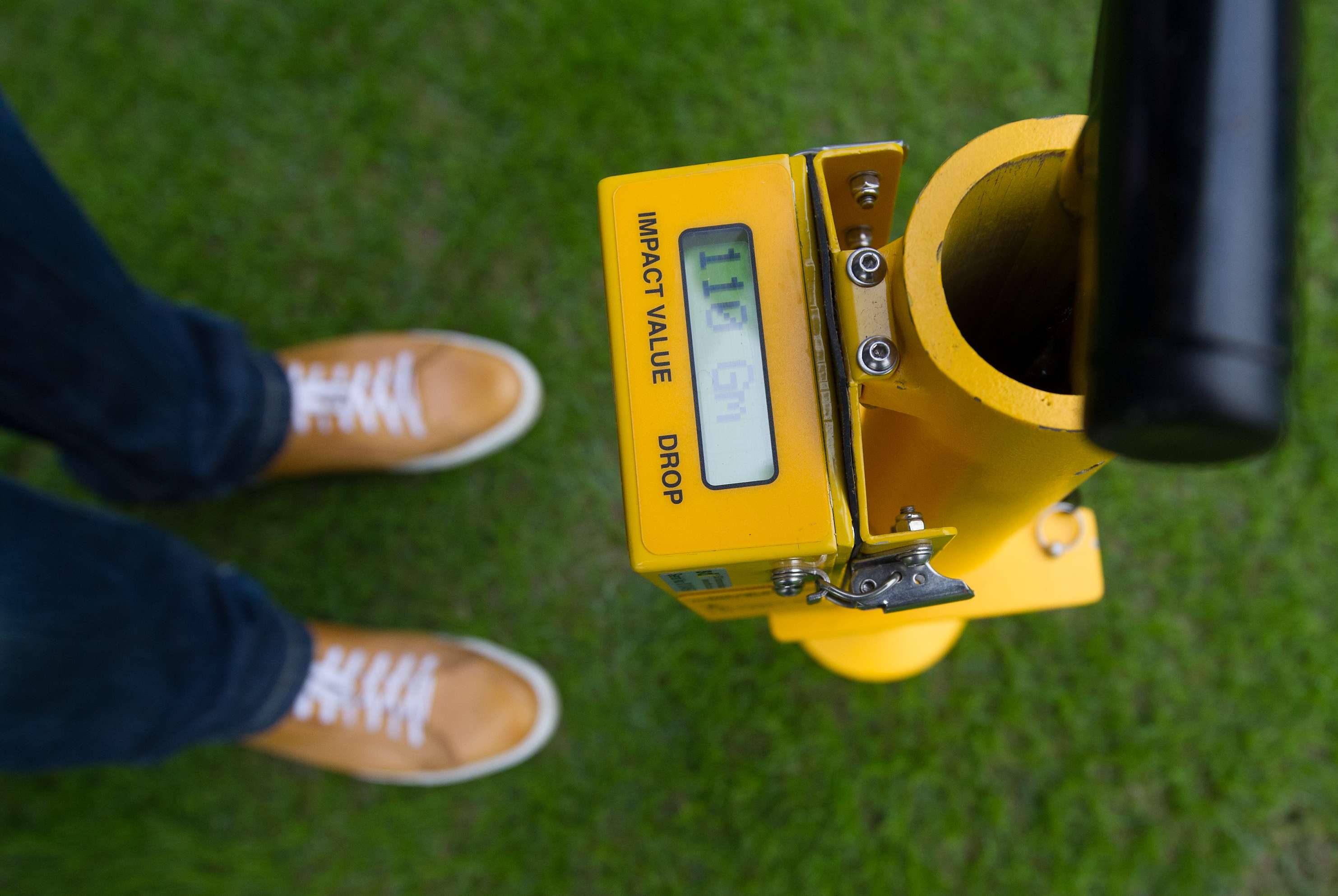 Потому для футбольного поля газон в Химках более чем качественный. Корреспондент "СЭ" проверил это не только на взгляд – благодаря исключительной вежливости работников стадиона удалось провести самую что ни на есть настоящую инспекцию поля. С помощью специального устройства. Все, как у людей, все, как у профессионалов.