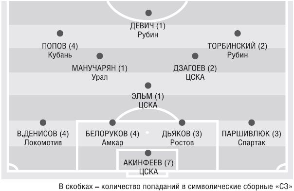 Игорь АКИНФЕЕВ ЦСКА. Вычеркнул из памяти неудачный матч с "Динамо" и очень уверенно, на ноль провел не менее принципиальную встречу с "Зенитом". Спас ЦСКА после удара Кержакова на последних минутах.