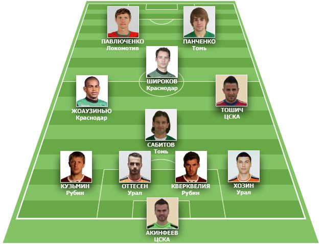 "СЭ" представляет свой вариант символической сборной 26-го тура чемпионата России. Интересно, что атакующий дуэт в ней впервые составили опытный Павлюченко и многообещающий Панченко. Первый двумя голами принес "Локомотиву" трудную победу над "Тереком", второй в игре с "Крыльями" сделал дубль как ассистент.