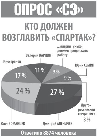 В такие трудно совместимые с жизнью условия и попадет новый главный тренер. Перед ним встанет задача вернуть народу "Спартак". А кто с ней справится? Легендарный, но неопытный Дмитрий Аленичев? Мудрый и титулованный, но несколько позабытый Юрий Семин? А может, именитый иностранец? Или какая-то темная лошадка? Да и вообще, справится ли хоть кто-нибудь?! От решения тех, кто делает этот невероятно сложный выбор, зависит главное – когда, да и будет ли спасен и возрожден некогда великий "Спартак".
