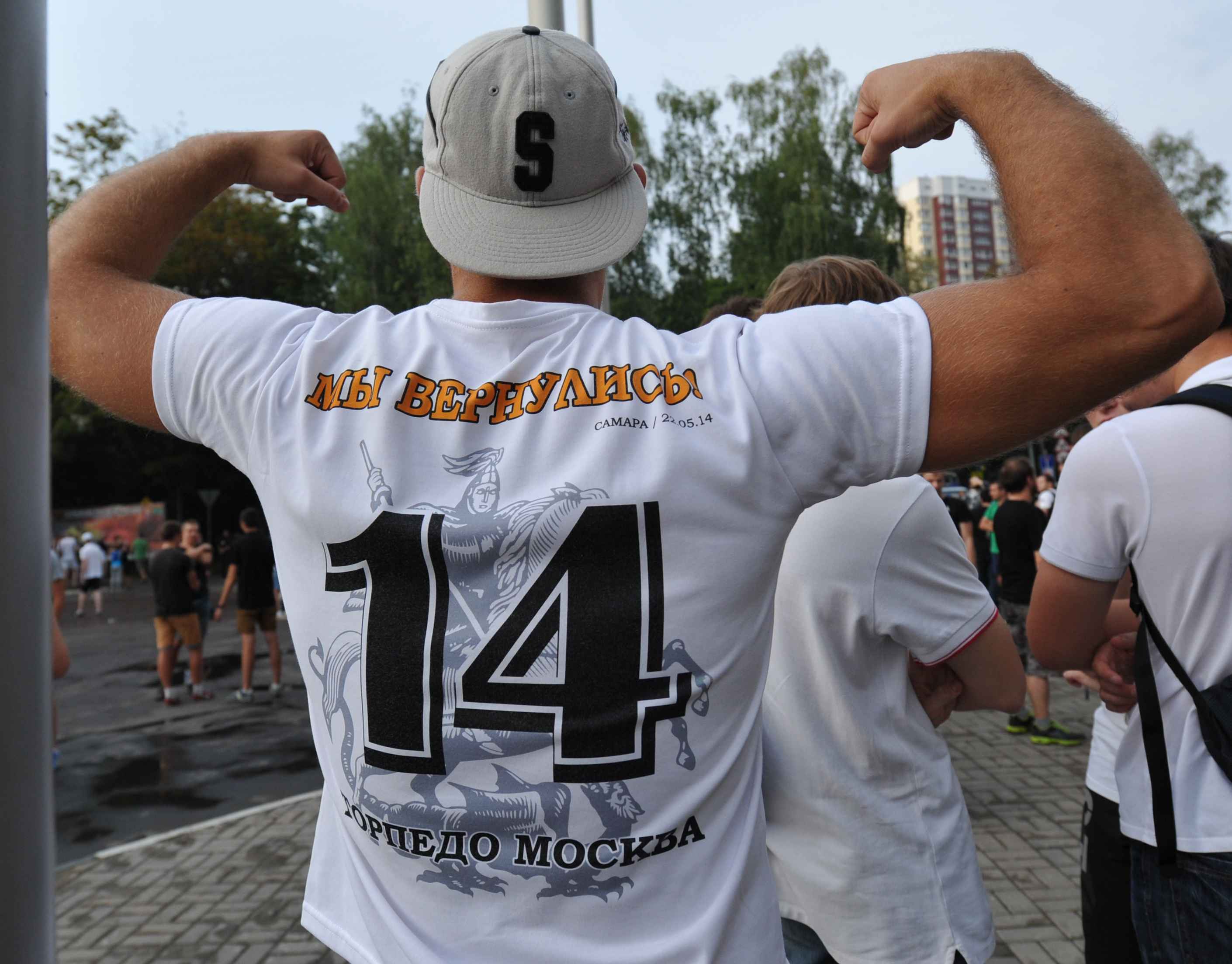 За два часа до начала игры на Ленинградском вокзале собралось много людей в черных футболках с различными белыми надписями. Но они не приветствовали возвращение "Торпедо" в премьер-лигу – они приветствовали ЦСКА. Таков был дресс-код армейских фанатов на игру в Химках: черный верх и красно-синяя роза.