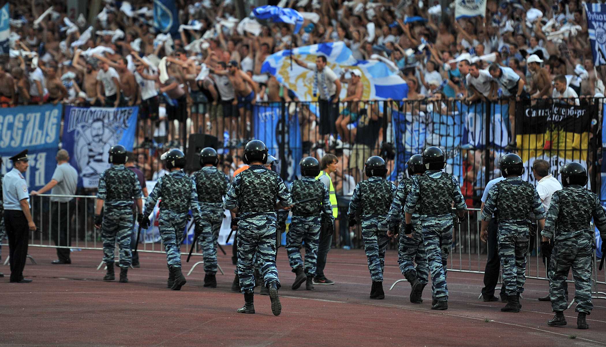 Полиции было действительно очень много. И вокруг стадиона, и внутри. Официально на арене собралось 16 тысяч зрителей – часть гостевой трибуны за воротами пустовала в целях безопасности. Но де-факто аудитория была значительно больше: из углового прохода за матчем с неподдельным интересом наблюдал целый батальон. А чуть в стороне от зенитовского виража дежурил ОМОН. И, к сожалению, довольно скоро ему пришлось выйти из тени.
