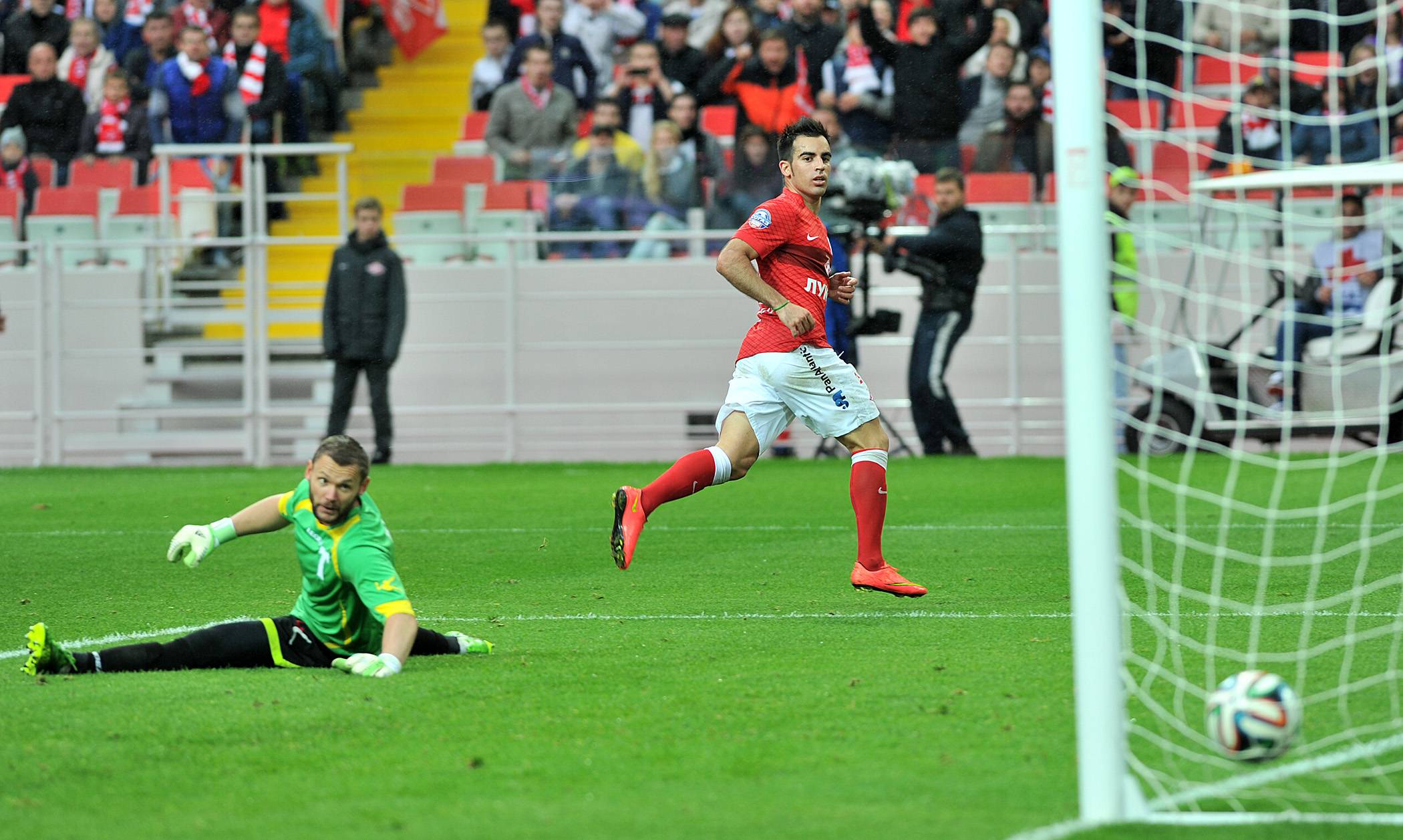 Второй тайм "Спартак" начал так же вяло, как и первый, несколько раз грубо оплошав на своей половине поля. Так и до неприятностей дело могло бы дойти – но Якин вовремя выпустил Джано, который вдохнул в красно-белых новую жизнь. Но лучшими все равно остались Хурадо и Промес. Вначале первый отпасовал второму, и голландец, искусно развернувшись, низом выстрелил в дальний угол. А потом изящная, истинно спартаковская "стенка" Дзюба – Хурадо – Дзюба – Хурадо завершилась шикарным испанским исполнением.