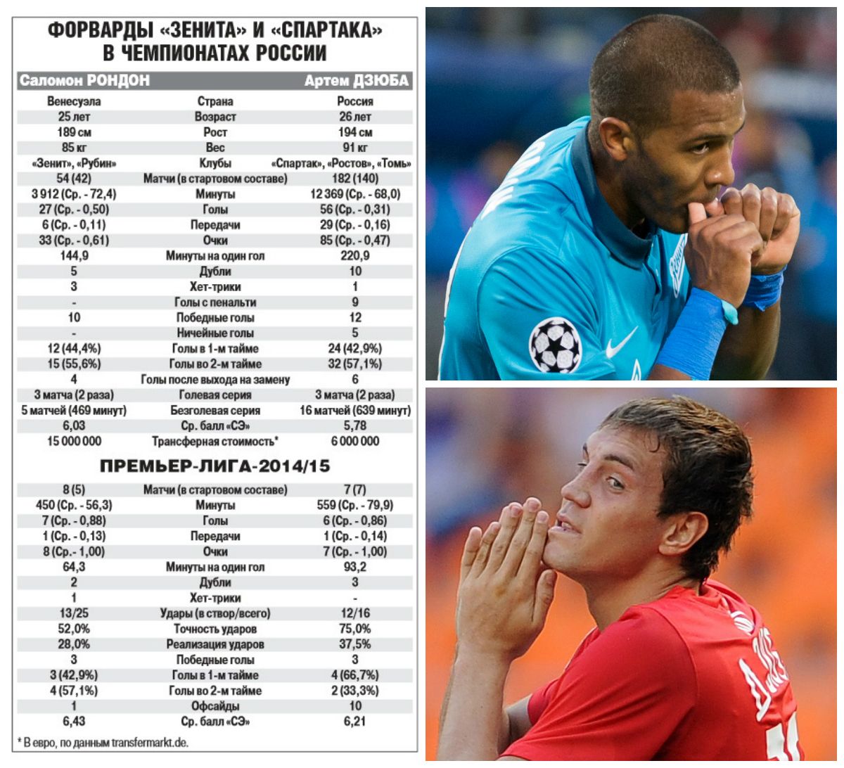 Южноамериканец здорово действует и внизу, и на втором этаже. Дзюба, несомненно, прибавляет, но пока он менее универсален, сильно привязан к штрафной площади. Так что я отдаю предпочтение Рондону.