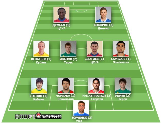 "СЭ" представляет свой вариант символической сборной тура. Обращает на себя внимание фигура стража ворот. Вратарь "Уфы" Юрченко становится лауреатом третий (!) тур подряд. Достижение тем более уникальное, что уфимская команда – новичок премьер-лиги.
