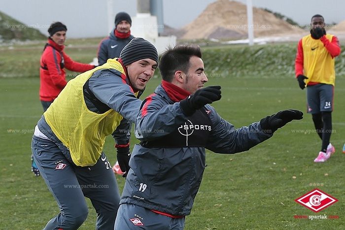 Артем ДЗЮБА и Хосе ХУРАДО на тренировке "Спартака". Фото - из галереи, опубликованной на сайте клуба 23 октября