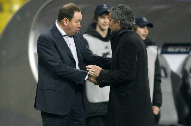 6 апреля 2010 года. Москва. ЦСКА - "Интер" - 0:1. Леонид СЛУЦКИЙ поздравляет Жозе МОУРИНЬЮ