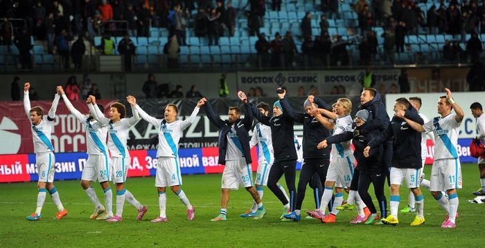 Игроки "Зенита" празднуют победу над главным конкурентом, которого опережают теперь на семь очков. Фото - Александр ФЕДОРОВ, "СЭ"