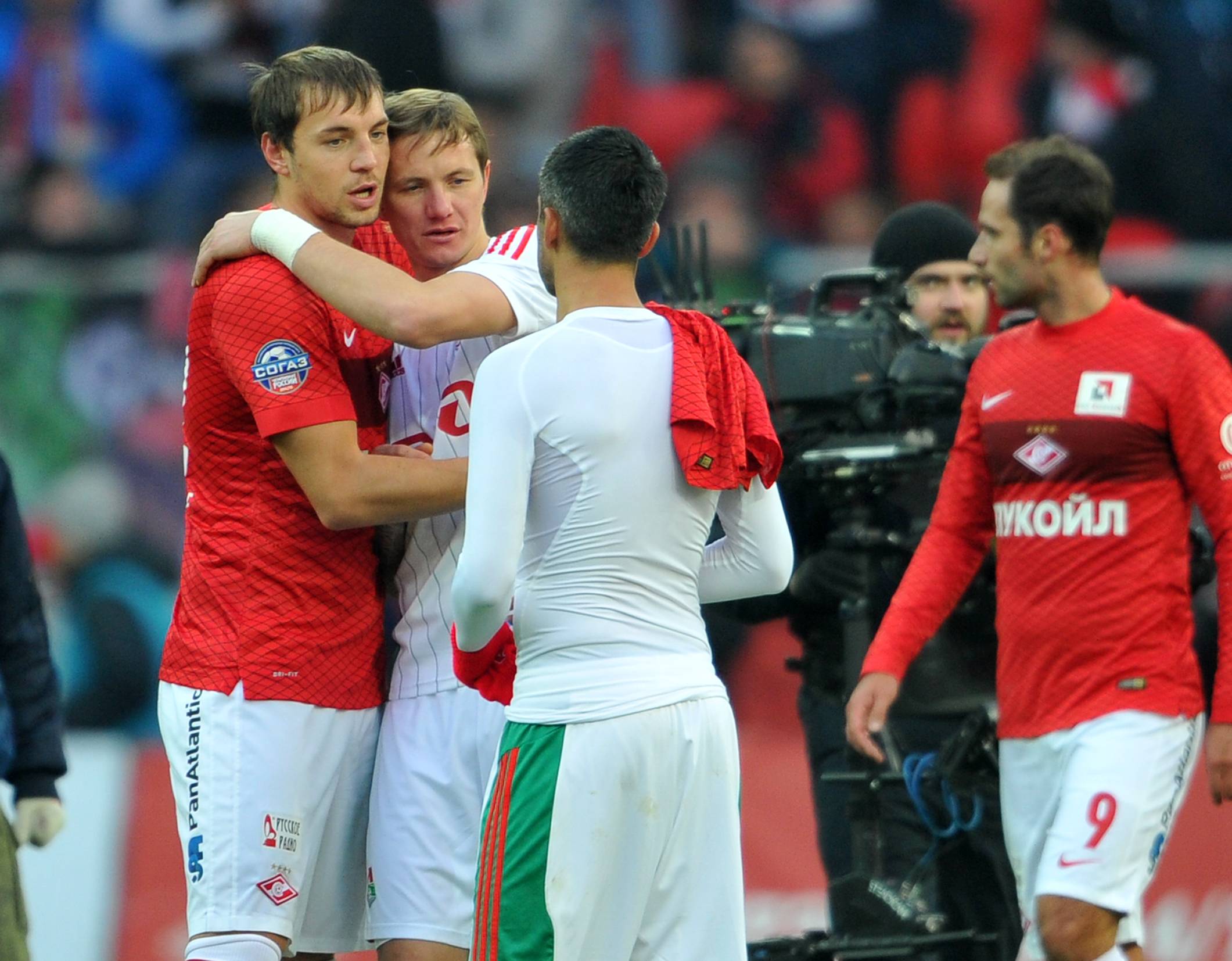 Не исключено, вскоре Артем ДЗЮБА (слева) дополнит спартаковскую колонию "Локомотива", которую составляют среди прочих Роман ПАВЛЮЧЕНКО и Александр САМЕДОВ, и снова станет соперником Роману ШИРОКОВУ (№9). Фото - Александр ФЕДОРОВ, "СЭ"