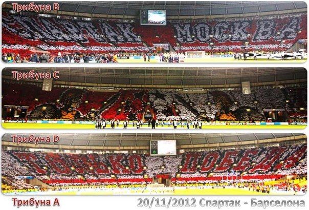 У болельщиков "Спартака" свой юбилей: "Самому масштабному перфомансу России – 2 года! Два года прошло со дня матча с "Барселоной", в котором был развернут самый масштабный перфоманс в истории России! И в этом нам помогли все пришедшие в тот холодный вечер в "Лужники" – более 70 тысяч зрителей! Вместе – мы сила!"