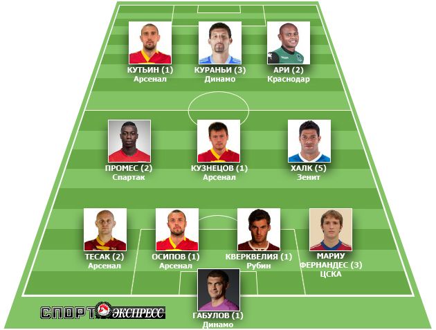"СЭ" представляет свой вариант символической сборной прошедшего тура. В ней четыре игрока "Арсенала", разгромившего на своем поле "Амкар"