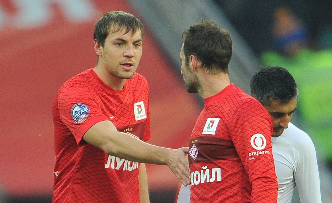 Футболисты "Спартака" Артем ДЗЮБА (слева) и Роман ШИРОКОВ. Фото Александр ФЕДОРОВ, "СЭ"