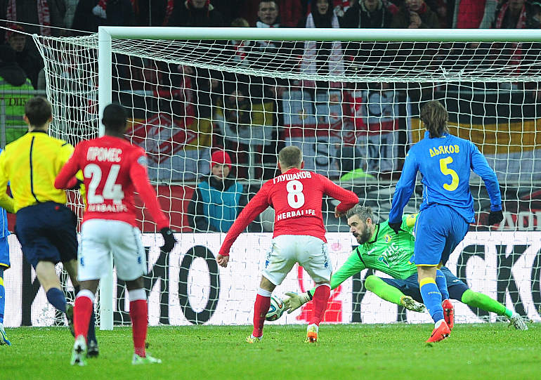Наверное, из гола "Спартака" можно было бы сделать какой-нибудь глубокомысленный вывод. Мол, сыграли низом, через центр, и вот он, результат. Еще как-нибудь приплести Широкова, который начал атаку. Но все-таки этот мяч видится скорее стечением обстоятельств, чем итогом какого-то замысла. А кроме того, пас Эберта, вышедшего на замену, Глушаков принял чуть ли не шеей.