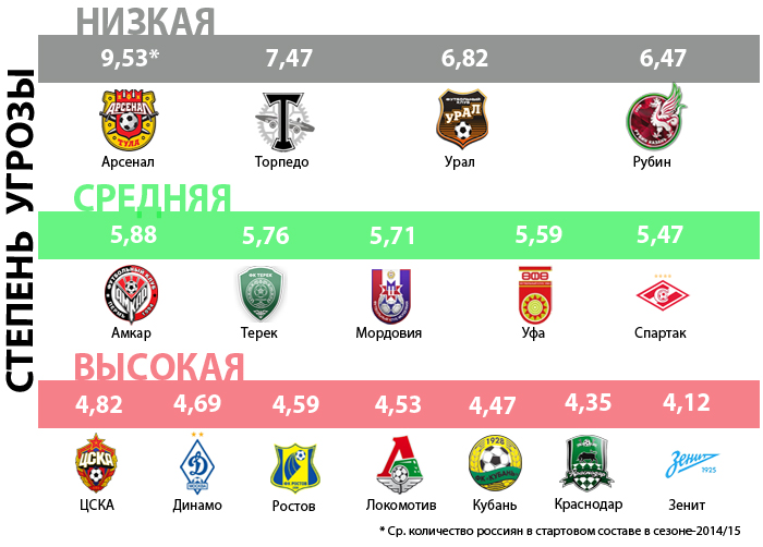 Чем руководствуются Мутко и Толстых помимо позиции Путина? Они стремятся минимизировать риски. Вот еще одна цитата из декабрьского интервью Мутко "СЭ": "Поймите: нам предстоит чемпионат мира в России. Если бы его не было, на ситуацию можно было бы смотреть по-разному... Любой лимит на легионеров – не догма. Естественно, глобально лучше, чтобы его не было, а была бы полноценная конкуренция... Однако за три года до ЧМ-2018 у нас нет иного выхода, как гарантировать нашим футболистам игровую практику".