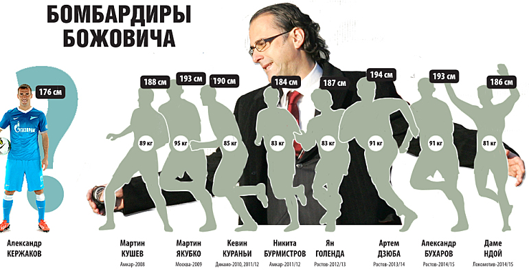 Черногорец все последние годы предпочитал иметь на переднем краю форварда таранного типа – статного, могучего, здорово играющего головой. Кержаков, при всем к нему уважении, вести силовую борьбу на равных с защитниками-гренадерами и продавливать их не способен, а воздух выигрывает не за счет фактуры, а благодаря правильному выбору позиции, то есть при определенном стечении обстоятельств. Готов ли Божович это учитывать и не требовать от игрока невозможного?