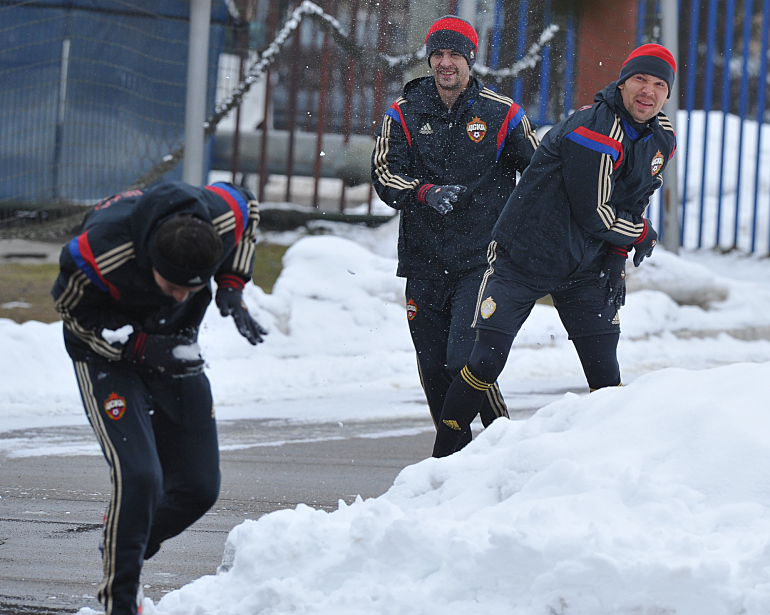 …Рядом с угловым флажком шлепнулся увесистый снежок – это Игнашевич не попал в Дзагоева. Алан ухмыльнулся, окунул руки в сугроб, слепил ответный снежок, но… тоже промазал. Тут подбежал Щенников и провел мастер-класс, попав в плечо Дзагоева, что вызвало общий смех.