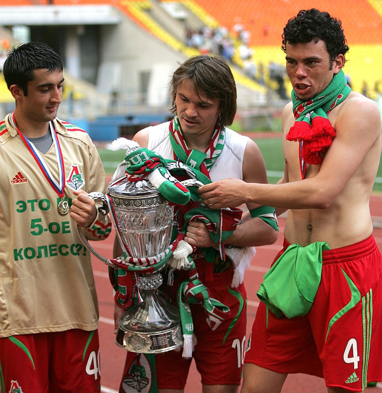 27 мая 2007 года. Москва. "Локомотив" – "Москва" – 1:0. Александр САМЕДОВ, Дмитрий ЛОСЬКОВ и РОДОЛФУ – обладатели Кубка России. Фото - Татьяна ДОРОГУТИНА, "СЭ