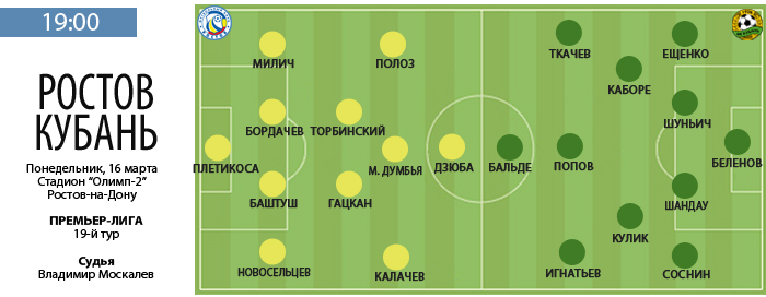 Сегодня матчем "Ростов" – "Кубань" закроется программа 19-го тура премьер-лиги.