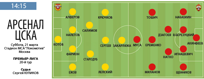 * Чемпион выиграл в премьер-лиге пять последних матчей с общим счетом 14-2. В этом календарном году с учетом Кубка России у ЦСКА три победы (мячи 7-1). |