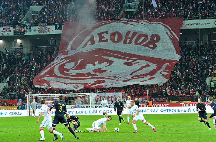 Для многих осталось загадкой появление на трибуне красно-белых огромного баннера с изображением Алексея Леонова в юбилей его космического подвига. Оказывается, согласно легенде, шагнув в открытый космос, Леонов произнес: "Вперед, "Спартак"!"