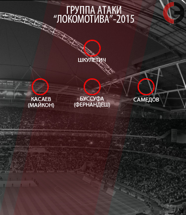 Группу атаки помимо Шкулетича составляют Самедов справа, Майкон или Касаев слева, и Фернандеш или Буссуфа на месте центрального атакующего полузащитника. С "Арсеналом" Божович рискнул сыграть в одного опорного, и португалец с марокканцем занимались созиданием, но поражение вынудило тренера вернуться к привычной для себя схеме. Против "Мордовии" опорную зону вновь зачищали двое – Михалик и Тарасов.