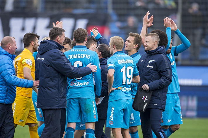 05 апреля 2015. Санкт-Петербург. Игроки "Зенита" празднуют победу. Фото - Вячеслав ЕВДОКИМОВ, ФК "Зенит"