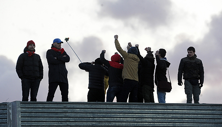 Во время матча инциденты продолжились. Фанаты "Спартака" залезли на крышу арены. До поры до времени выходка казалась безобидной…