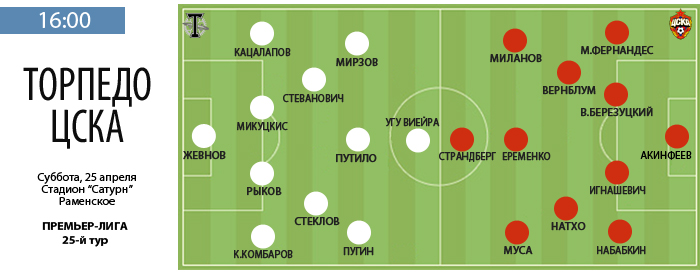 В матче первого круга армейцы победили "Торпедо" со счетом 4:1. При этом сейчас в составе ЦСКА остался лишь один футболист, забивавший в той встрече – Кирилл Панченко. Авторы двух других голов Сейду Думбья и Витинью в зимнее трансферное окно расстались с красно-синими. Еще один мяч в том поединке забил в свои ворота торпедовец Дмитрий Айдов, который сейчас защищает цвета "Анжи".